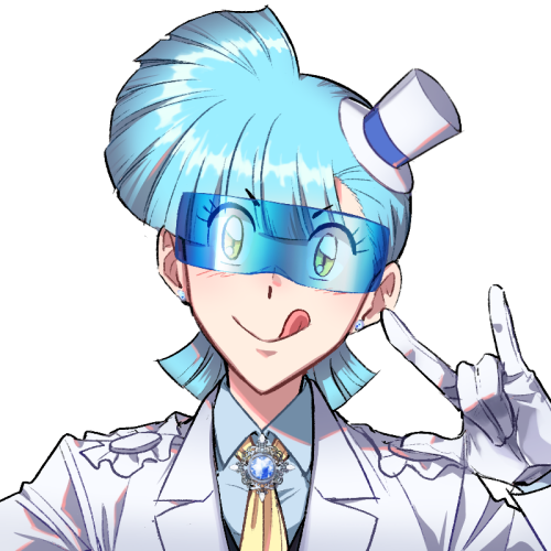 하늘빛 머리에 금안. 관자놀이에 자기가 개발한 고글장치를 부착함